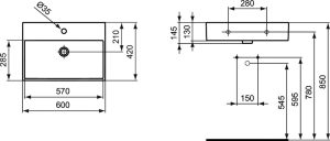 K077801 Strada νιπτήρας κρεμαστός της Ideal Standard 60Χ42 επίτοιχος
